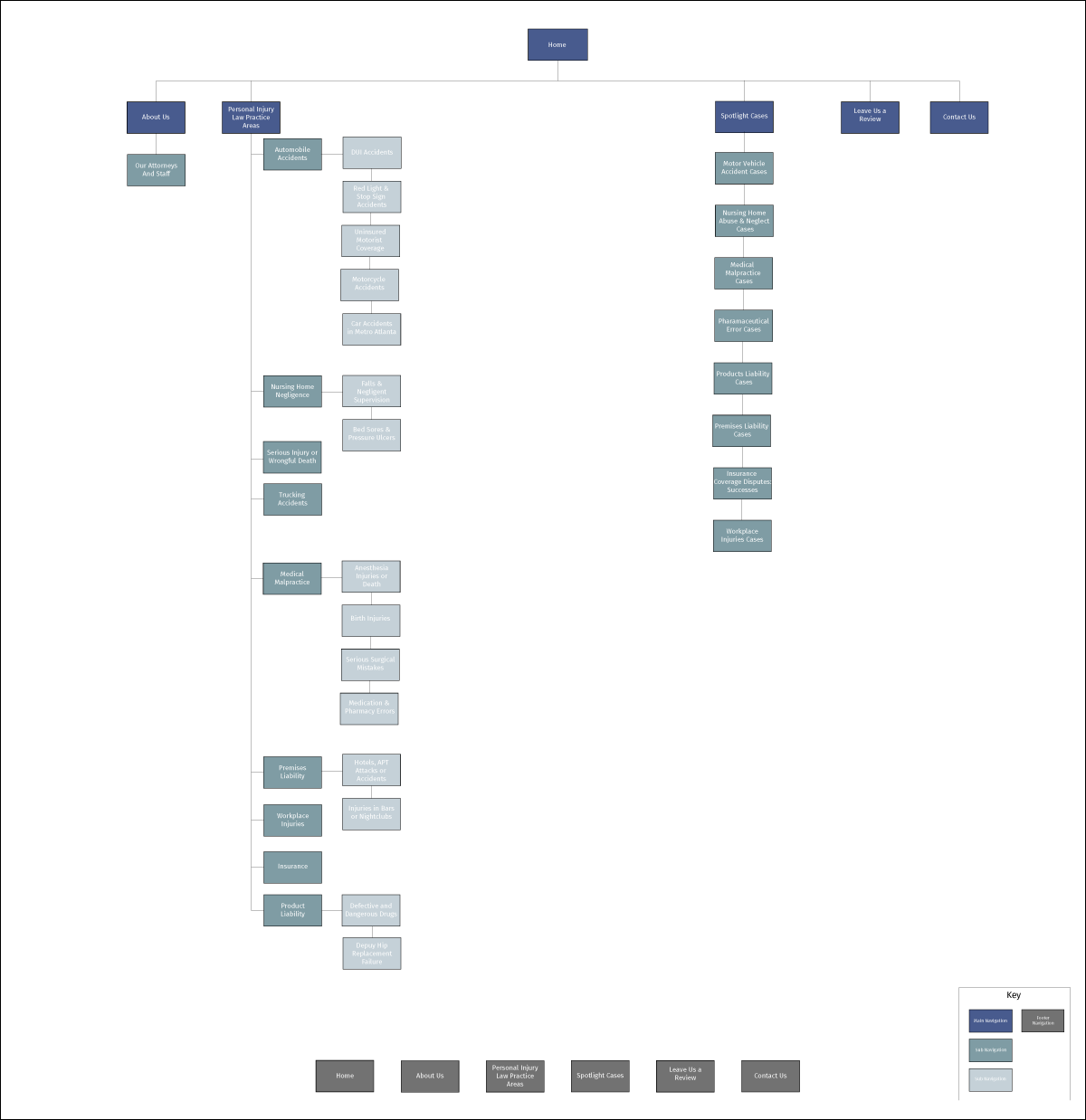 Strengths: Form to request a consultation on every page which is easy for the user to fill out and expand the firms client’s reach, branding is consistent throughout the site creating a cohesive feel