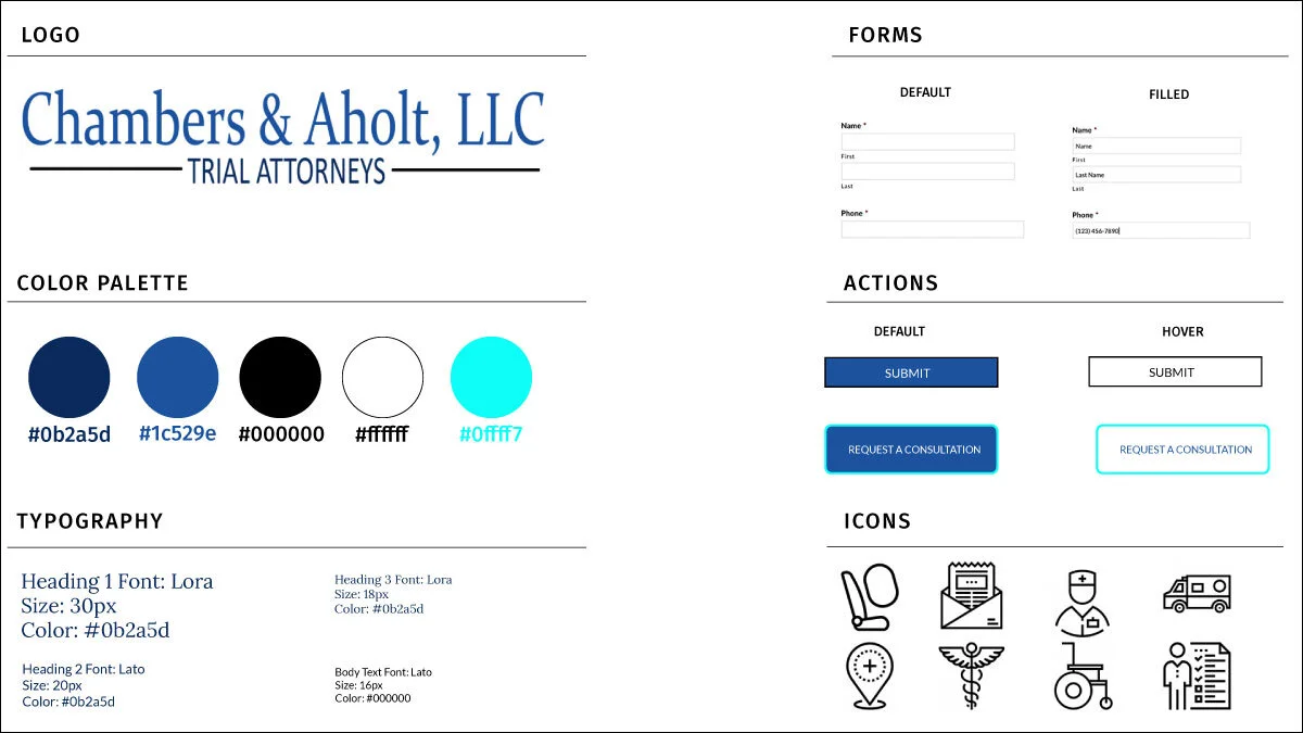 To create a redesigned professional website with improved usability and visual design. Chambers & Aholt uphold the reputation as dedicated, experienced and respected attorneys and wanted the site to reflect these traits. Client requirements and other improvements were incorporated into the new design of the website.